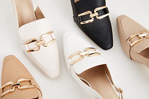 Fashare Womens Kitten Heels Slingback Closed Pointed Toe Dress Shoes Metal Chain Buckle Elegant Pumps 5
