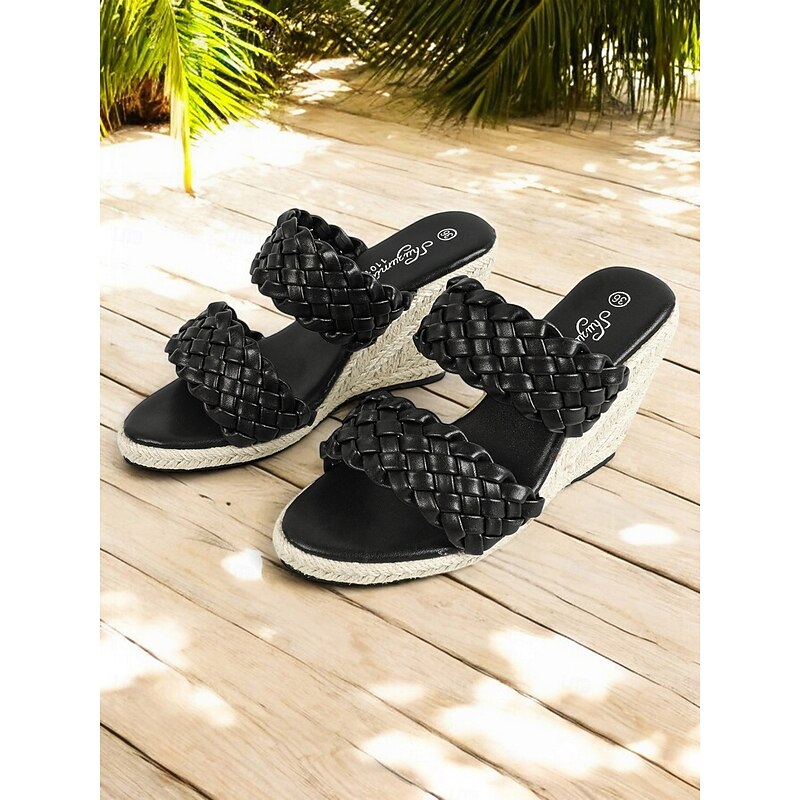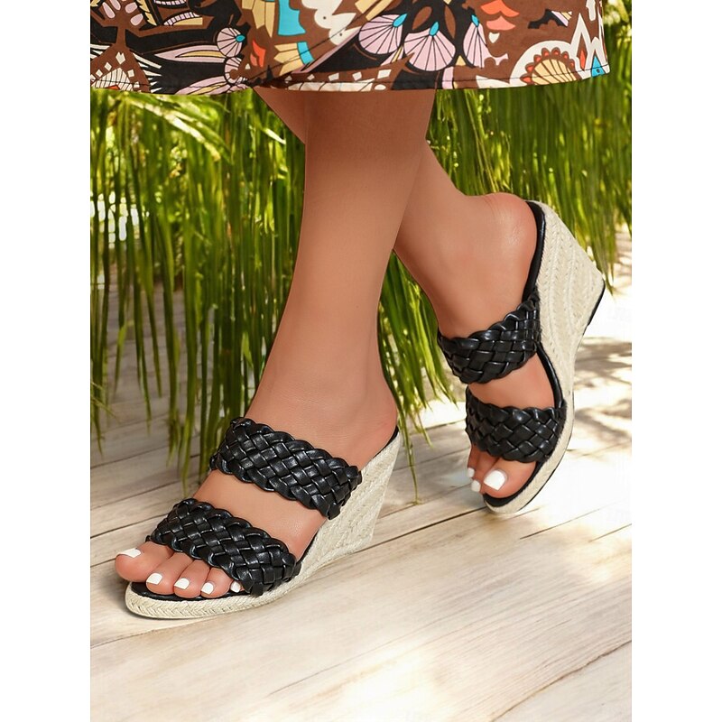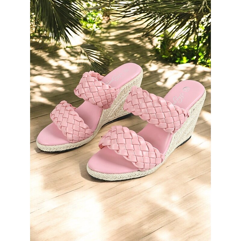 Red Woven Slide Sandals for Women – Stylish Wedge Heel, Summer Beach & Casual Outdoor Footwear 20