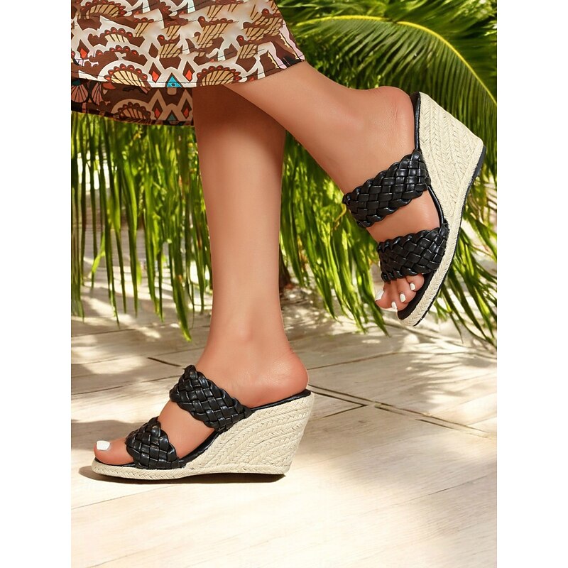 HOT ! Red Woven Slide Sandals for Women – Stylish Wedge Heel, Summer Beach & Casual Outdoor Footwear