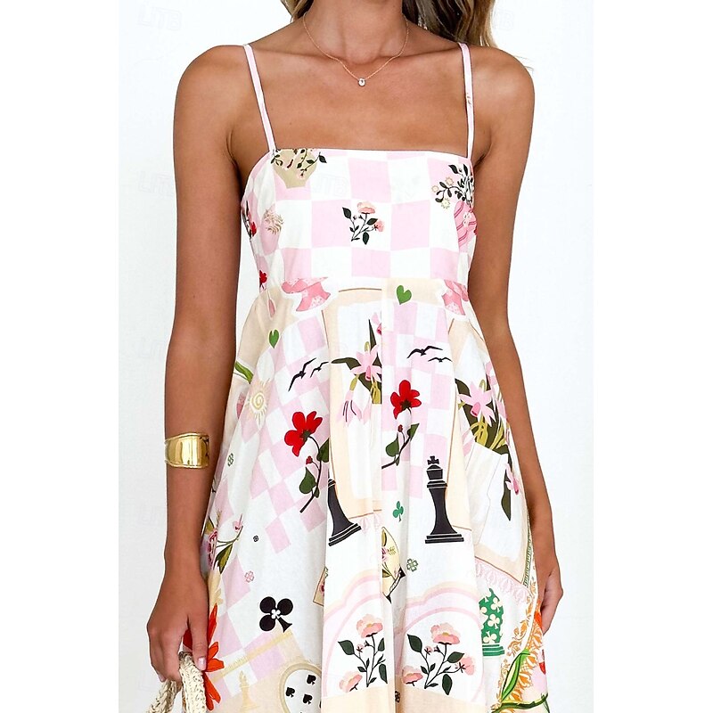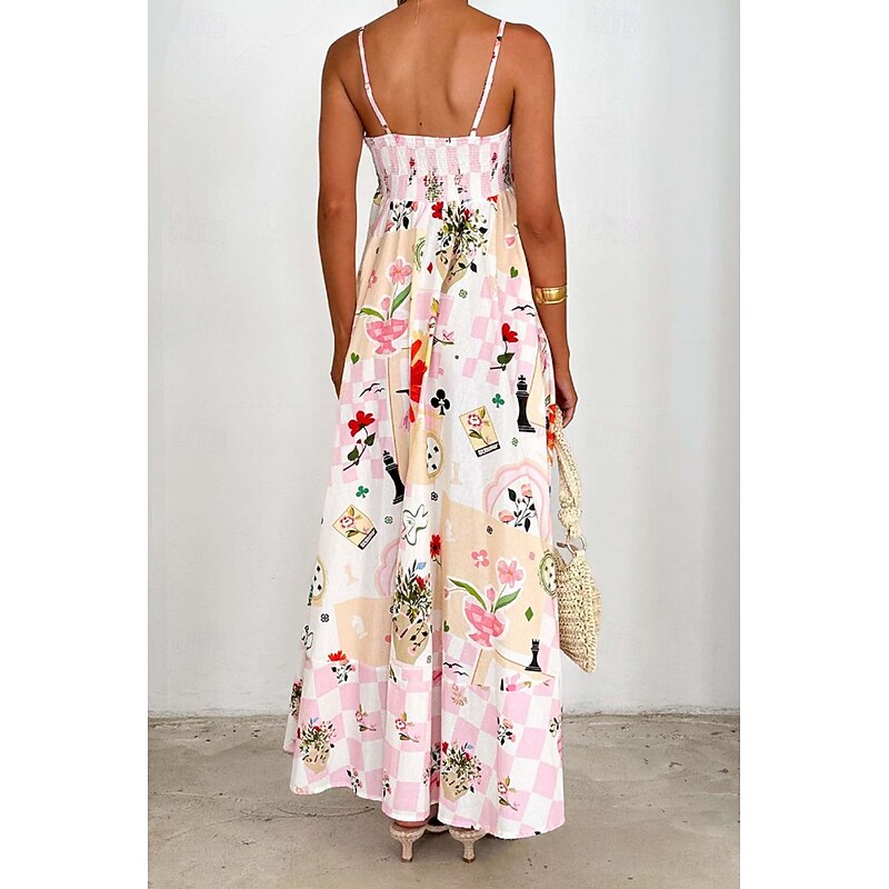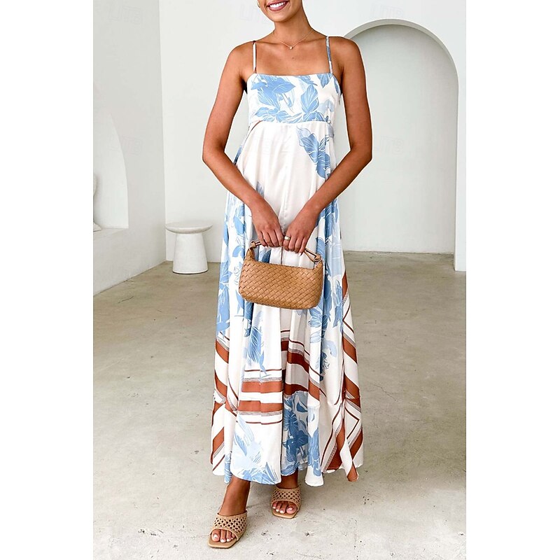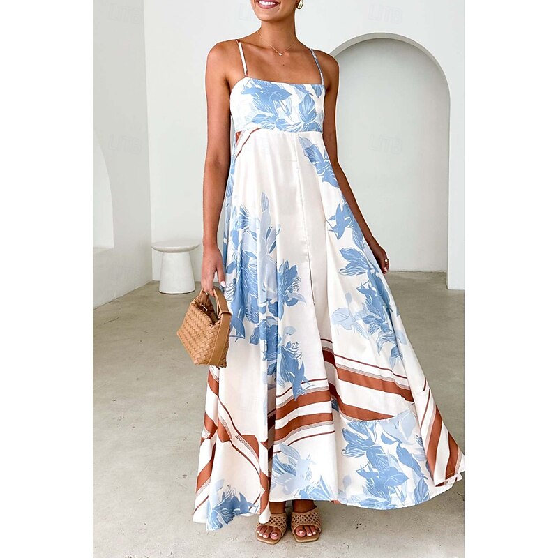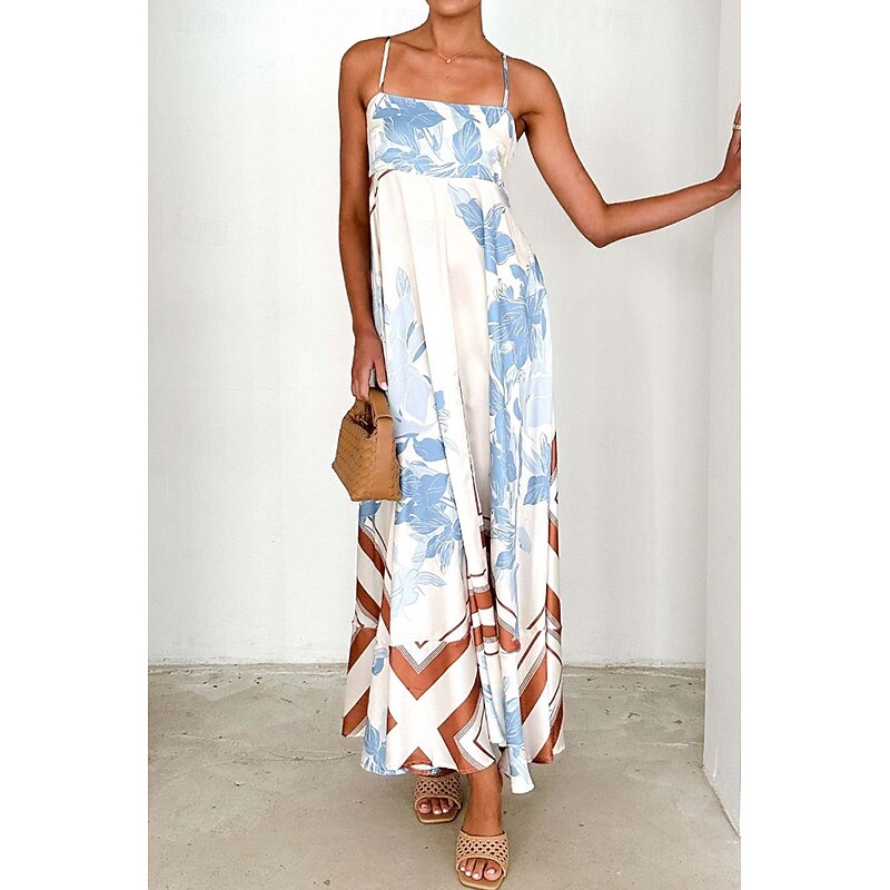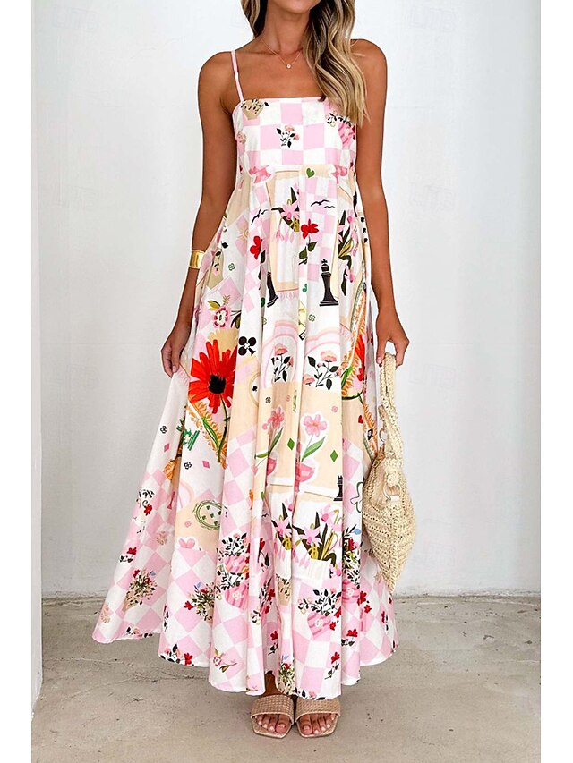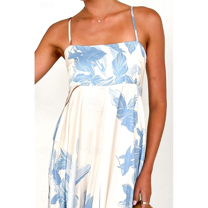 More information about Women's Midi Dress Floral Dress Slip Dress Fashion Classic Vacation Going out Weekend Regular Fit Flower Sleeveless Spaghetti Strap Pink Blue Summer