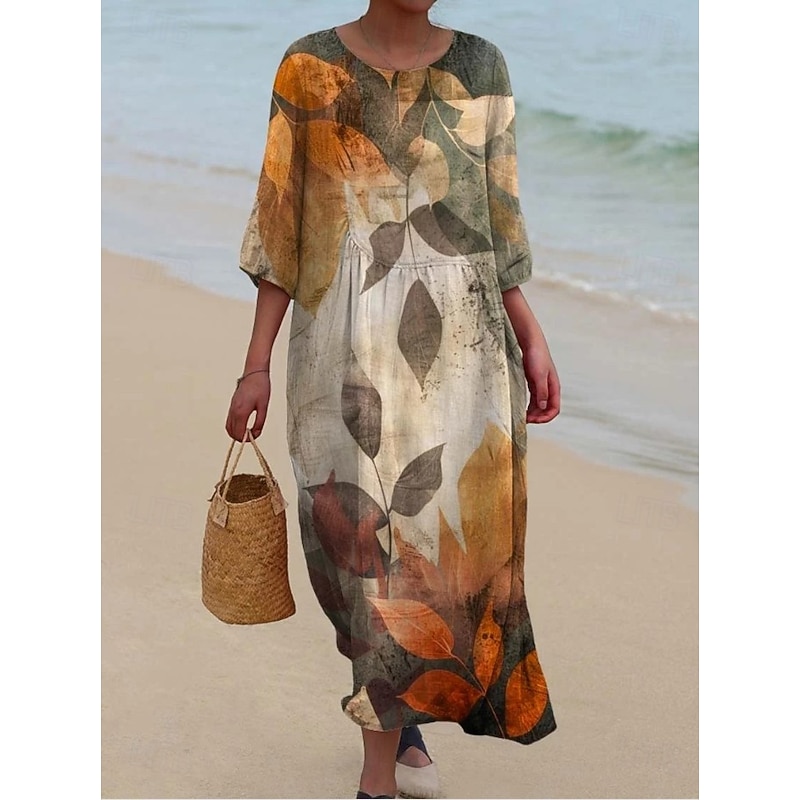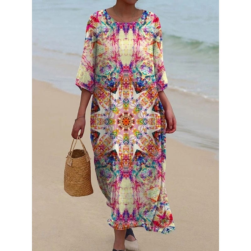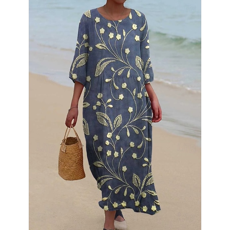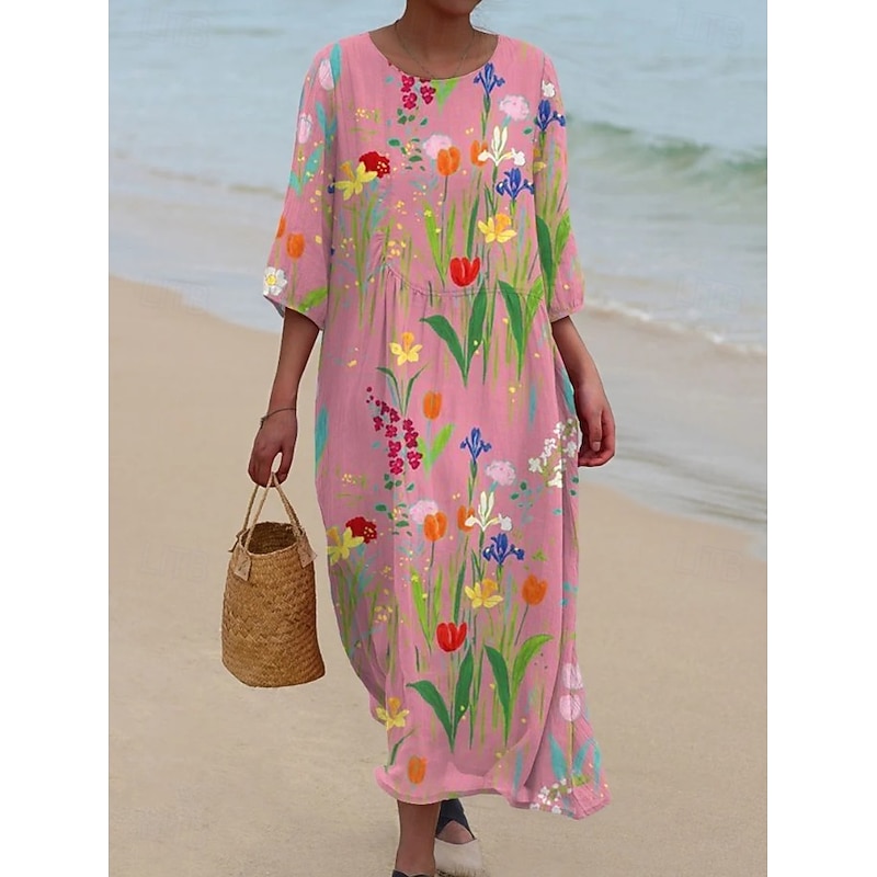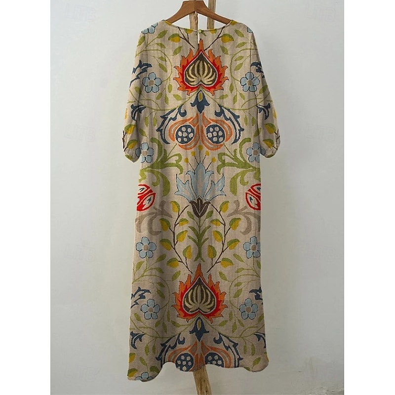 More information about Women's Maxi Dress Kaftan 3/4 Length Sleeve Crew Neck Casual Shift Dress A Line Dress Dress Boho Daily Holiday Date Floral Graphic Dark Yellow Light Pink Yellow Light Green