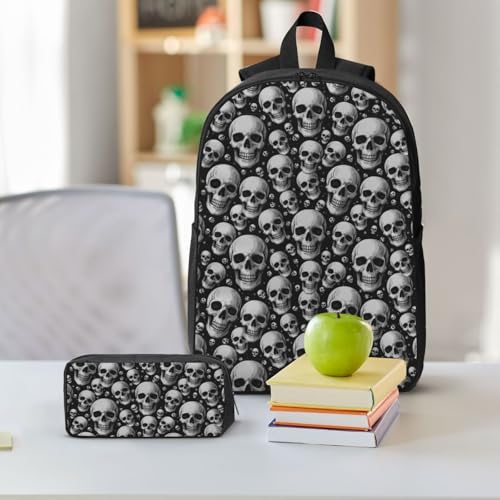 Unisex Backpack Set 3 Piece Backpack + Pencil Case + Lunch Bag Combination (for Skull) 5
