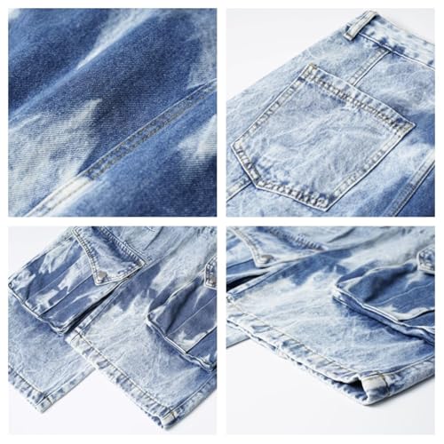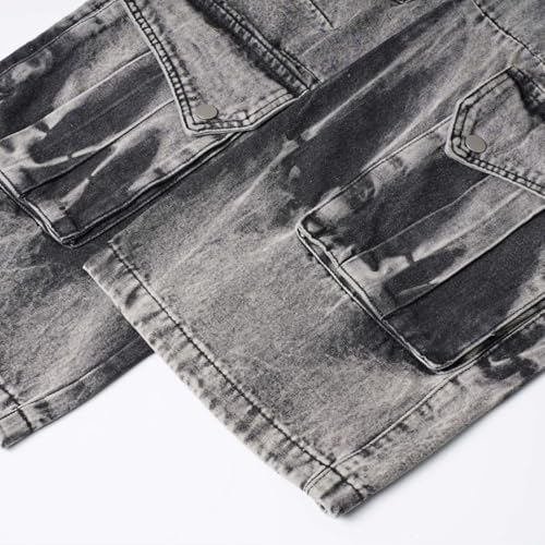 Men's Fashion Baggy Cargo Jeans Street Style Multi-Pockets Y2K Skater Wide Leg Denim Pants 7