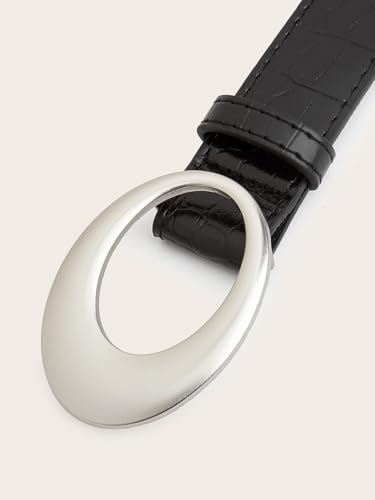 Women's Faux Alligator Leather Waist Belt Silver Oval Metal Buckle Belt for Jeans Pants Black Belt