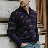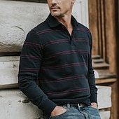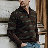 More information about Men's Horizontal Stripes Rugby Polo Long Sleeve Polo Shirts Collared Shirts Sportswear Casual School Outdoor Athleisure 3D Print Spring Fall Winter Dark Brown Red Army Green