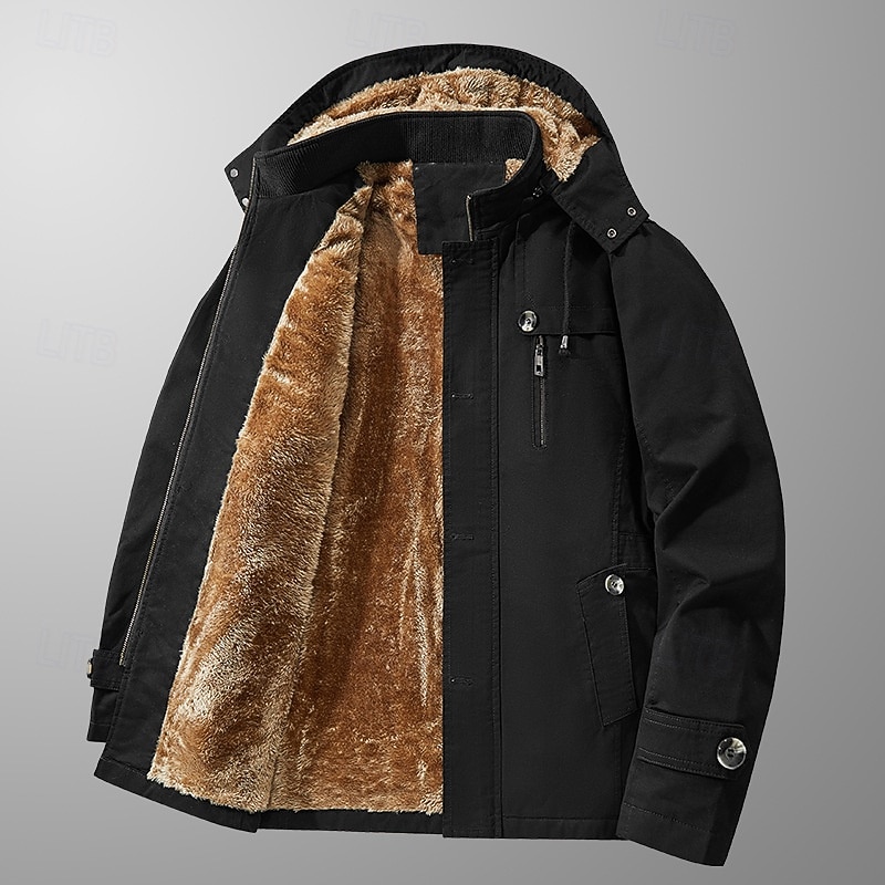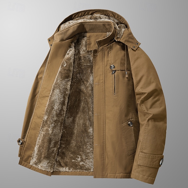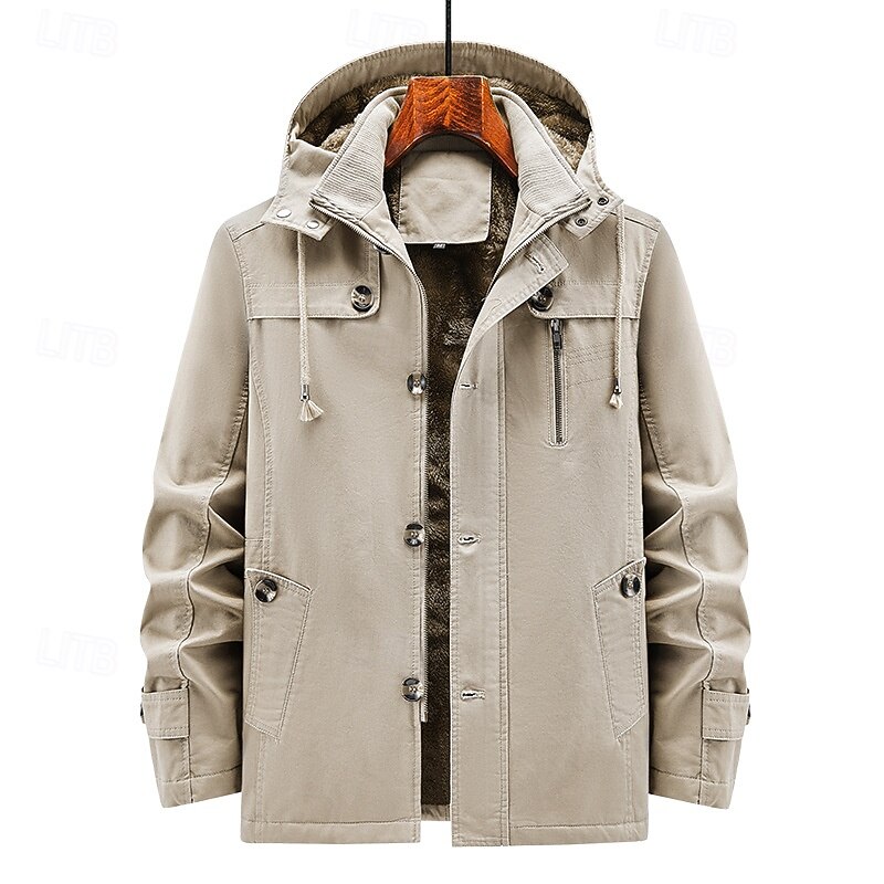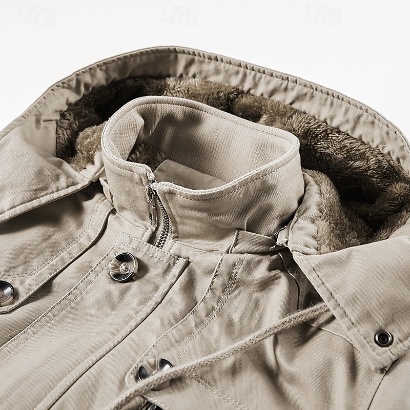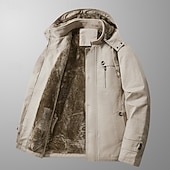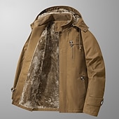 More information about Men's Outdoor Jacket Fleece Jacket Cargo Jacket Hoodied Jacket Formal Home Pocket Winter Spring & Fall Solid Color Vintage Fashion Shirt Collar Regular Black Brown Khaki Jacket