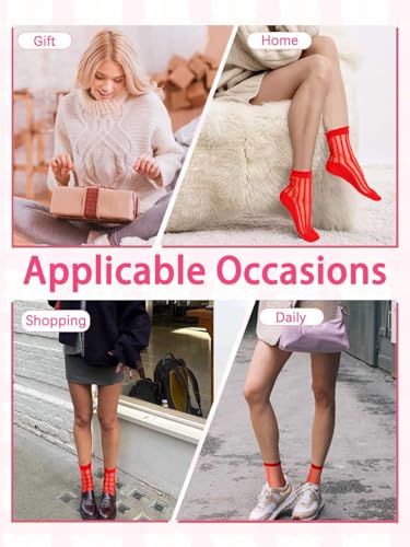 • Each pair features a unique design - stripes, floral prints, polka dots, and geometric patterns in red and pink shades.Novelty sheer socks are perfect for women and girls and are easy to match with different styles of clothing and shoes. Mesh see through socks are very comfortable without grinding your feet.It are also suitable for sunrise travel,work,school and other occasions