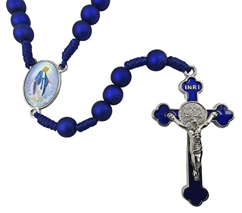 • ★ This beautiful corded prayer rosary has 8 mm round shiny blue acrylic beads & enameled St Benedict Medal Cross Crucifix