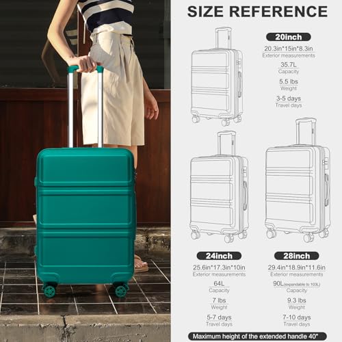 NOTE: 20-INCH SIZE NOT STANDARD CARRY-ON DOES NOT EXPAND!!!【20 INCH SPINNER LUGGAGE DIMENSIONS】including wheels and handles overall size: 20.3 x 15 x 8.3inches (51.5 x 38 x 21cm). Packing Dimensions: 18.3 x 14.76 x 8. Weight: 5.5 lbs. CAPACITY(non-expandable): 35.7L. Kono 20inch carry-on luggage maximizes your packing capacity for both domestic and international travelers aiming to travel light(please check the airline's baggage allowance.). It's suitable for 2 - 3-day trips!【DURABLE + 2-YEAR LIMITED WARRANTY】Made from a protective, lightweight hardside ABS shell, this luggage is scratch-resistant, pressure-resistant, dirt-proof, and waterproof. Each Kono luggage undergoes extremely strict quality control test standards to ensure that our products can endure the harsh conditions of contemporary transportation. Moreover, Kono offers a reliable 2-year limited warranty service!【TELESCOPIC HANDLE + SHORT HANDLE】The adjustable 3-level aluminum telescoping handle enables you to easily and quickly maneuver in tight spaces. It is sturdier than most telescoping handles on the market. Additionally, there are soft - sided handles. They are convenient for easy carrying when you're in a hurry. Moreover, these soft - sided handles are extremely useful when you need to lift the suitcase, especially when it's heavy.【CARRY ON LUGGAGE WITH LOCK + WHEELS】The side-mounted TSA lock, combined with a smooth YKK zipper, serves to deter theft. This ensures that only you or a TSA agent can easily access your belongings during travel, providing added security and convenience. The multi-directional spinner wheels offer 360º effortless mobility, reducing the strain on the traveler's wrist. Additionally, the wheels have been re-engineered to be lightweight.【PRATICAL INTERIOR FOR WELL ORGANISED】Kono hard shell carry on luggage designed with 2 roomy fully-lined compartments. The packing straps keep your clothes in place, a zipper mesh pocket for anything you want to keep separate. Not only a perfect small luggage for yourself, but also a cute gift for your families, friends, or school children. Perfect for everyday use. top-grade materials and excellent craftsmanship ensure long-lasting durability.