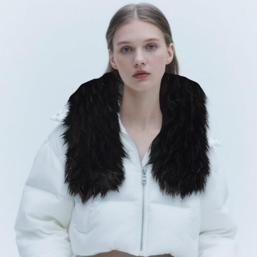 More information about GORGECRAFT 81 * 12cm Faux Fur Collar Scarf Detachable Faux Fur Hood Trim Replacement Black Hood Trim Neck Warmer Shawl Artificial Furry Chenille Stick Trim for Winter Coat Jacket Parka Christmas