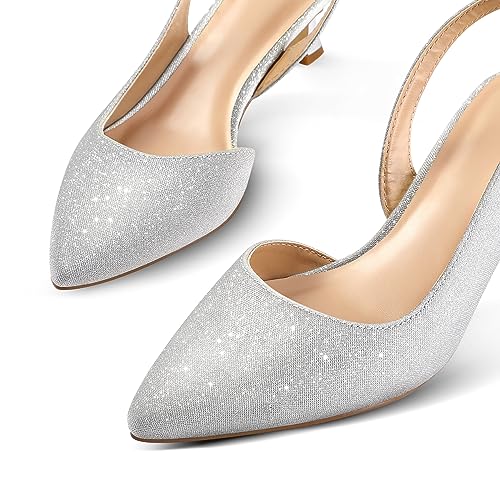 mysoft Women's Pumps Slingback Kitten Heels Pointed Toe Sexy Wedding Party Dress Pump Shoes
