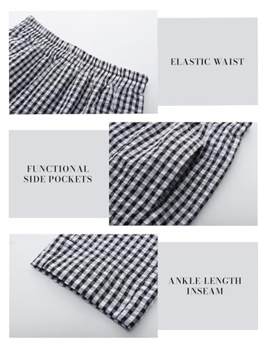 • 【Fabric】Crafted from a breathable seersucker blend, these checkered pants women offer effortless comfort. The lightweight, crinkled texture is on-trend, making them your brand-new go-to for entire-day lounging and casual days at home.
