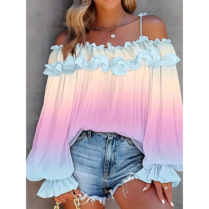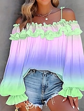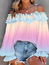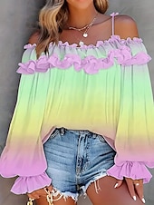 More information about Women's Summer Tops Color Block Casual Long Sleeve Puff Sleeve Strap Regular Tops Pink Blue Sky Blue Green Summer