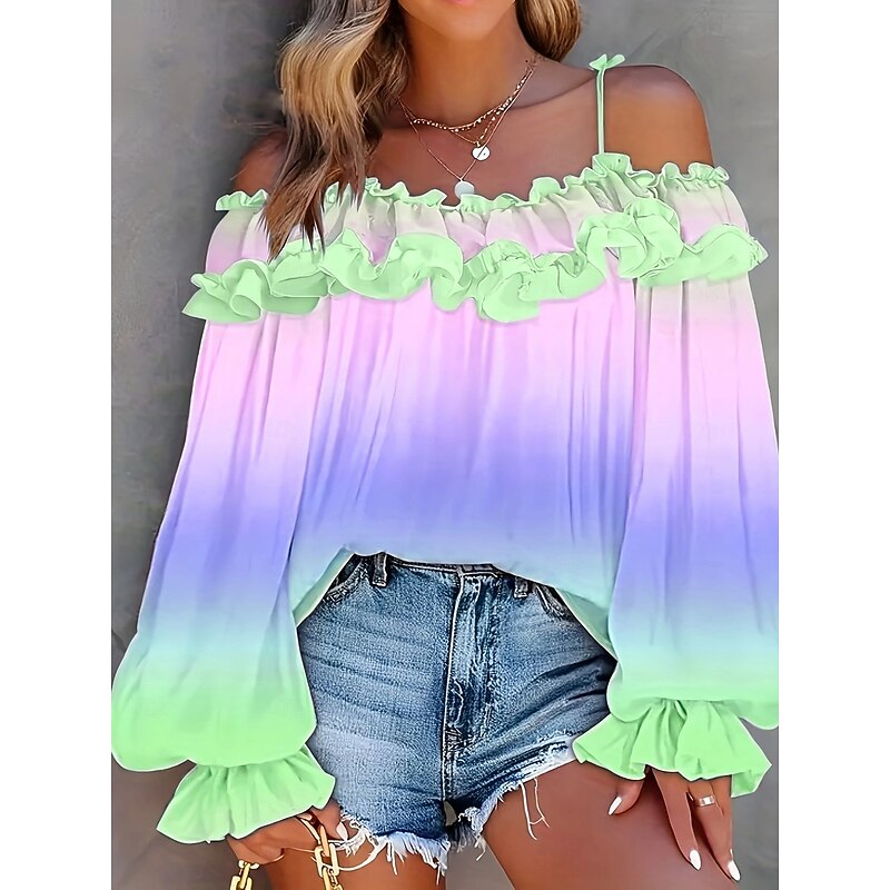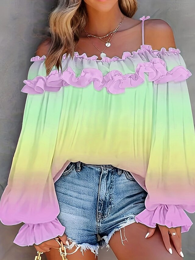 Women's Summer Tops Color Block Casual Long Sleeve Puff Sleeve Strap Regular Tops Pink Blue Sky Blue Green Summer 2