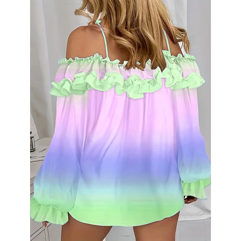 Highlights - Stay cool and stylish all summer long with this polyester summer top - Long sleeves provide coverage while still being breathable - Made for women, this casual top features a loose fit for ultimate comfort - Stand out in the crowd with the trendy color block pattern - The unique strap neckline adds a touch of flair - Puff sleeves add a feminine touch to this casual summer top