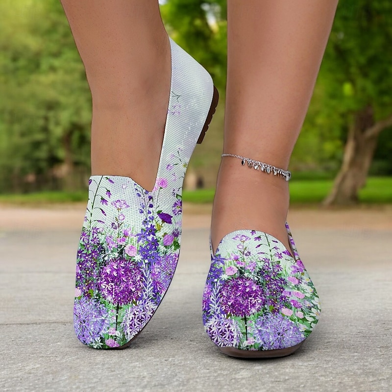 More information about Women's Printed Fly-knit Slip-On Flats with Lightweight Design - Stylish Casual Shoes for Everyday Wear and Travel