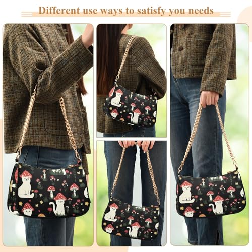 Clutch Shoulder Bags Tote Evening Purse Handbags for Women Cat Mushroom Hobo Bags with Zipper Closure 5