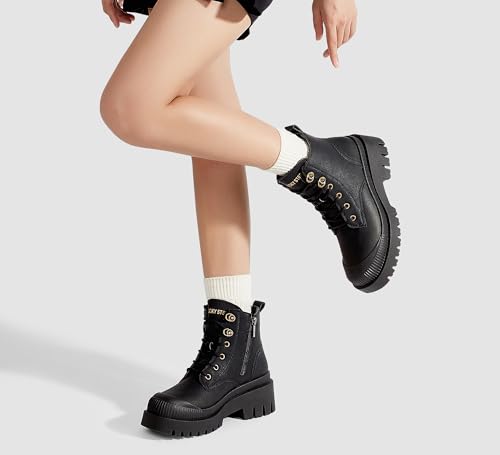 • 【Comfort】: Crafted from durable premium faux leather with a cushioned insole and soft lining, these women’s combat boots offer long-lasting comfort for all-day wear.
