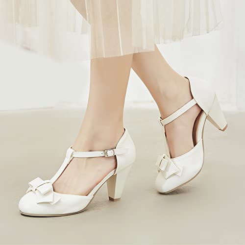 Shinelly Women Rockabilly Sweet T-Strap Cone Heel Mary Janes Adorable Round Toe Pumps with Bows 6