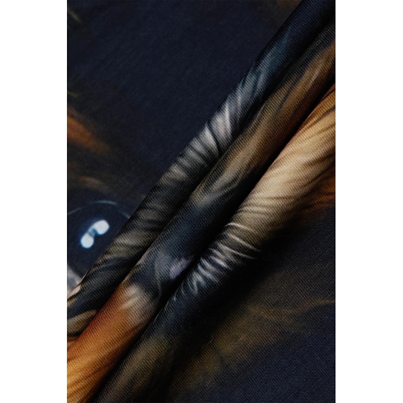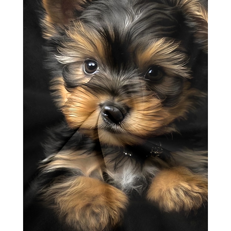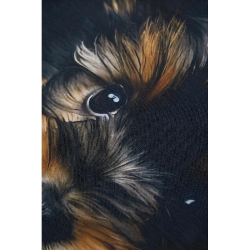 Highlights [Fabric] : Constructed from high-quality polyester, this women's t-shirt ensures a soft, breathable, and cozy fit that's perfect for all-day wear. The fabric features micro-elasticity, adding a slight stretch for improved comfort and mobility during daily activities. [Fit] : With a regular fit and standard top length, this t-shirt offers a versatile and comfortable style suitable for various body types. The classic round neckline and short sleeves create an easygoing silhouette ideal for casual settings. [Design Highlights] : The shirt showcases a captivating 3D print of a playful puppy, adding a touch of charm and whimsy to your wardrobe. The vibrant and realistic dog print pops against the solid black background, making it a standout piece for dog lovers. [Occasions] : Perfect for daily wear and weekend outings, this t-shirt effortlessly complements casual events and laid-back days. Pair it with your favorite jeans or shorts for a relaxed and stylish look that fits seamlessly into your everyday routine. [Size Range] : Available in sizes S, M, L, XL, and 2XL, this t-shirt caters to a diverse range of fits, offering options for a variety of shapes and preferences.
