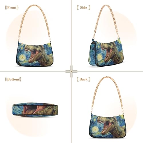 More information about Roar Dinosaur Starry Night Clutch Handbags Womens Ladies Shoulder Bag Floral Crossbody Purse Zipper Closure Chain Strap