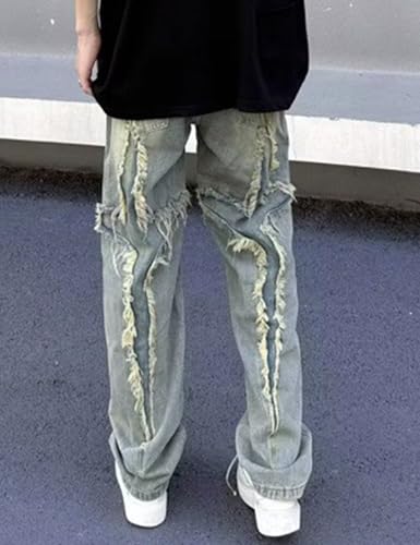 • Match:Y2k skater pants vintage jeans straight leg denim pants gothic distressed jean men are great to pair with simple t shirt, blouse, vest, sweater, jackets, coat, sneakers, canvas shoes, sport shoes for a trendy look