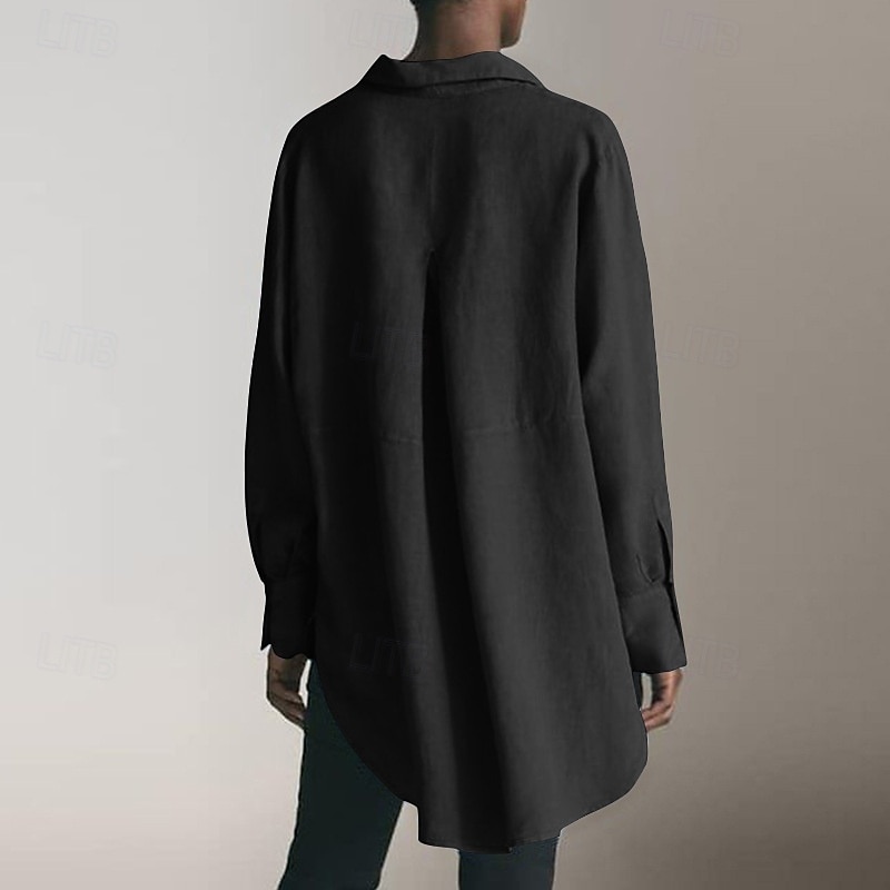 More information about Women's Shirt Cotton Linen Shirts Linen Shirt Button Up Plain Daily Stylish Basic Long Sleeve Shirt Collar Regular Tops Work Daily Holiday Buttons Black White Blue Spring Fall