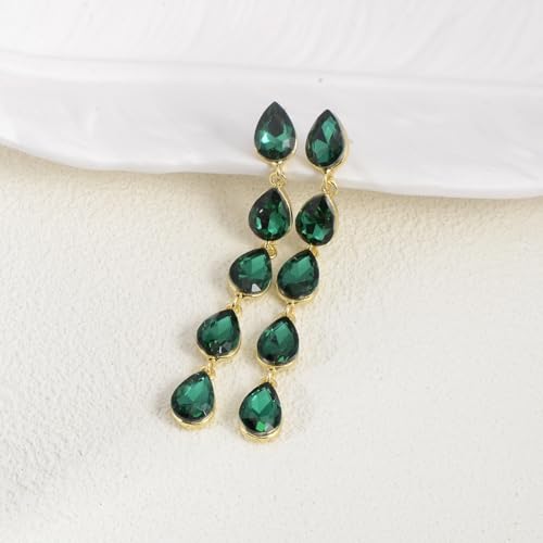 Teardrop Austrian Crystal Dangle Oversized Earrings for Women 14K Glod Jewelry 6