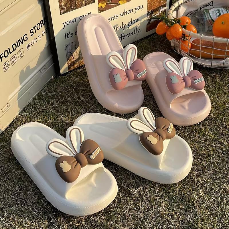 Cute Rabbit Bow Women's Summer Slipper Sandals,Non-Slip Thick Sole Home Bathroom Outdoor Indoor Comfort Sandals 5