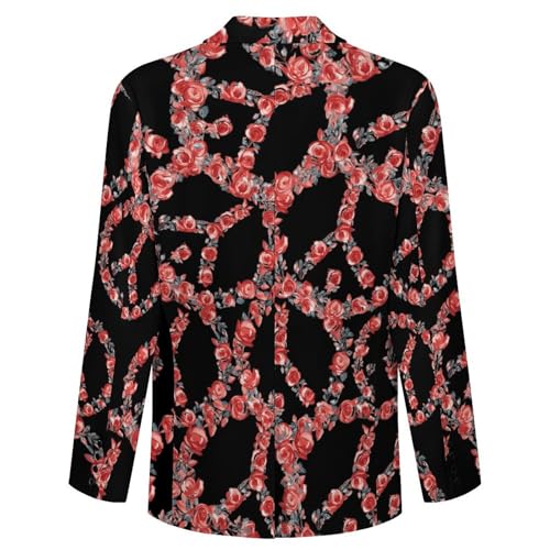 Peace Sign Red Rose Men's Slim Suit Long-Sleeve Prom Tuxedo Classic Two Button Business Jacket 6