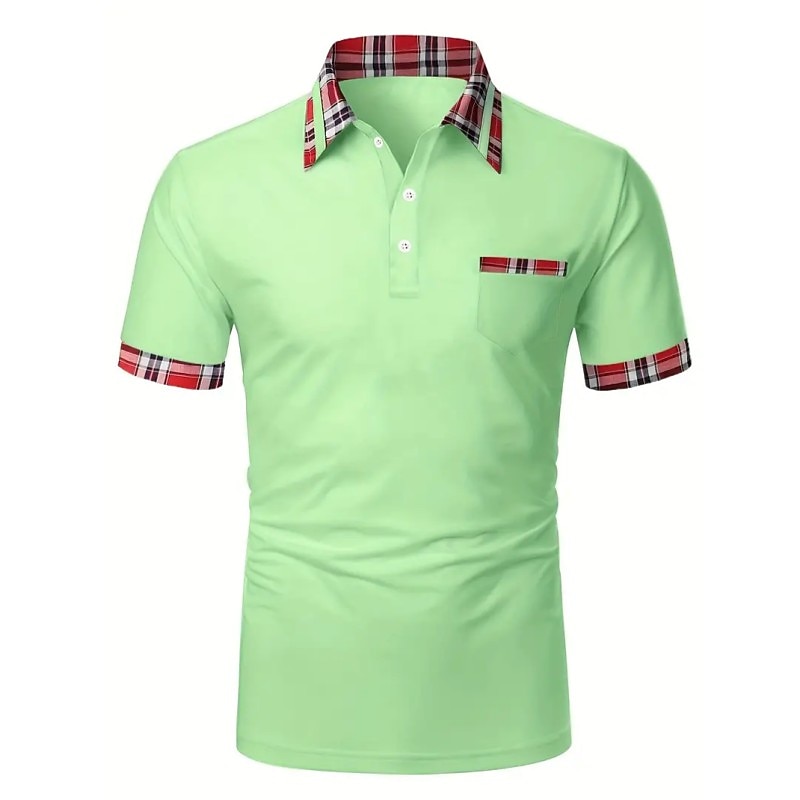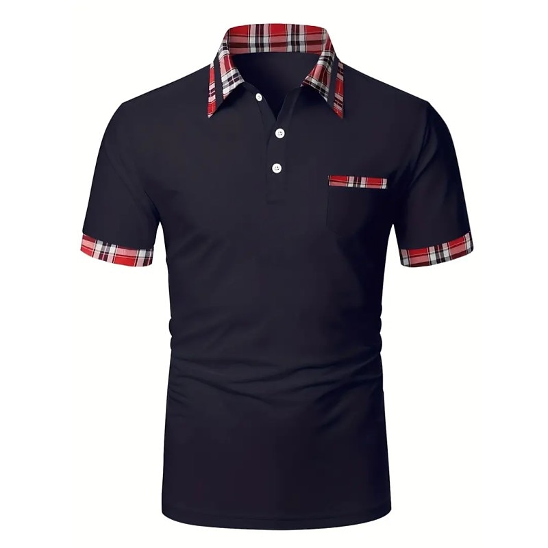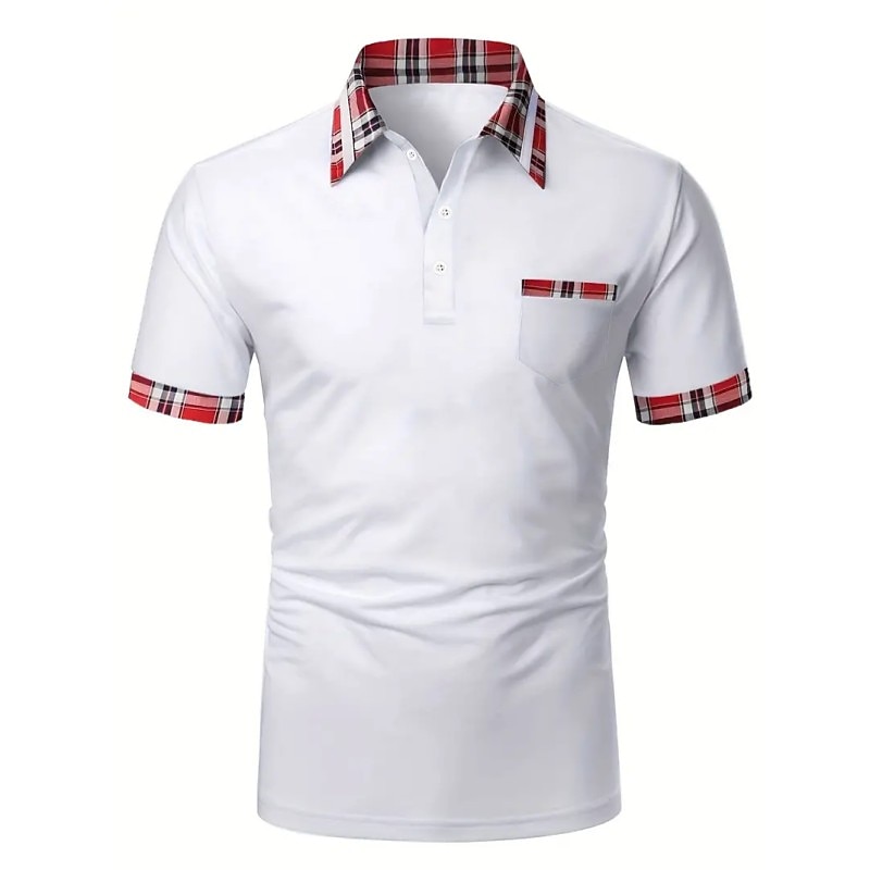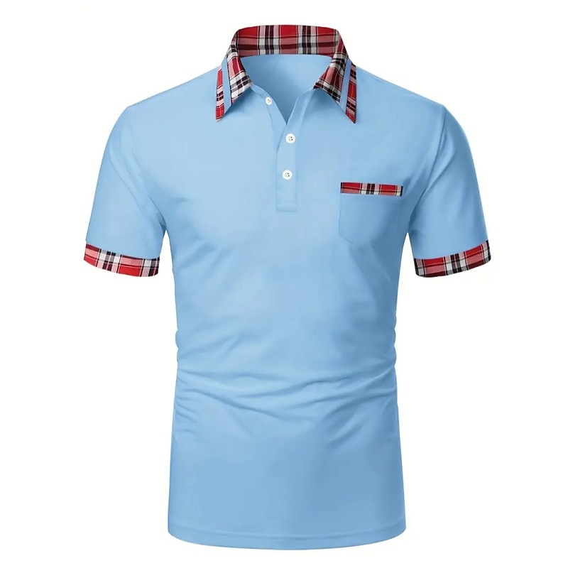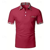 More information about Men's Tennis Shirt Golf Shirt Business Casual Collar Polo Collar Short Sleeve Simple Basic Solid Color Plaid / Check Patchwork Button Summer Regular Fit Black White Red Navy Blue Blue Green Tennis