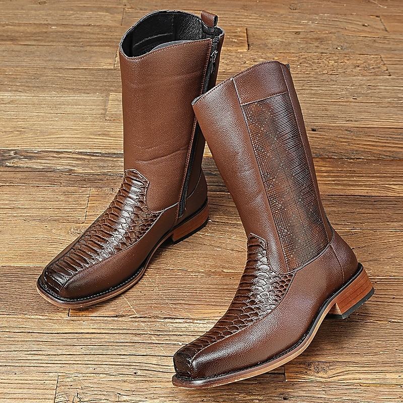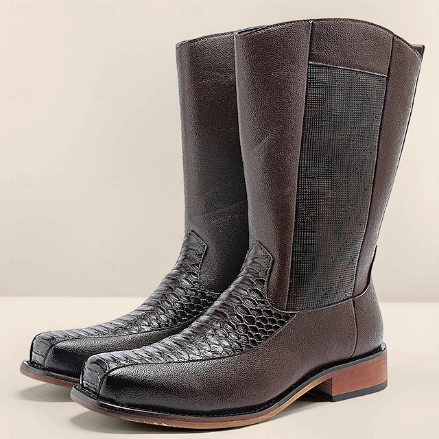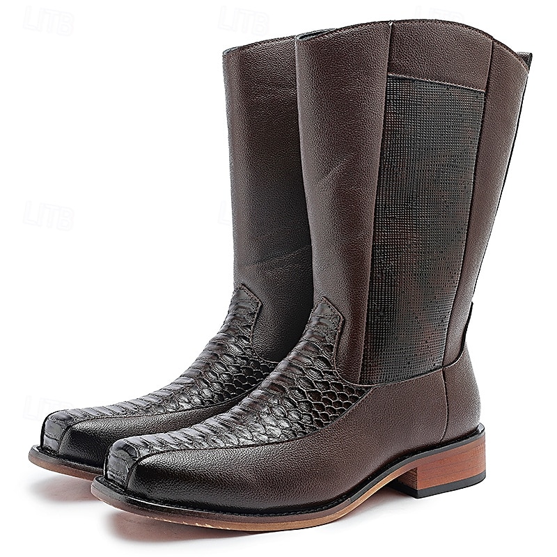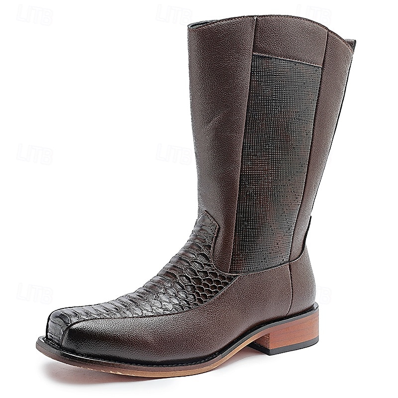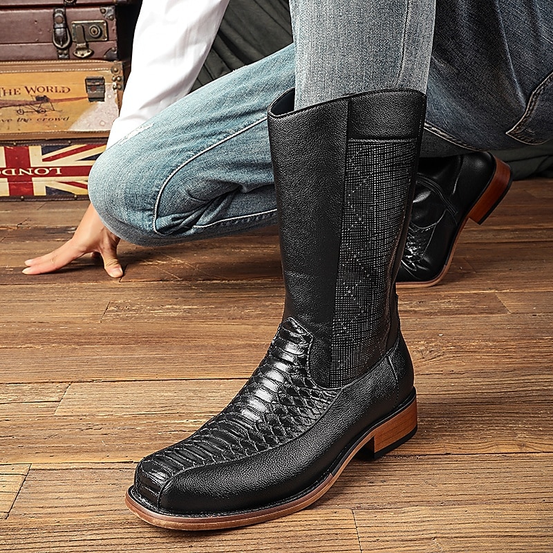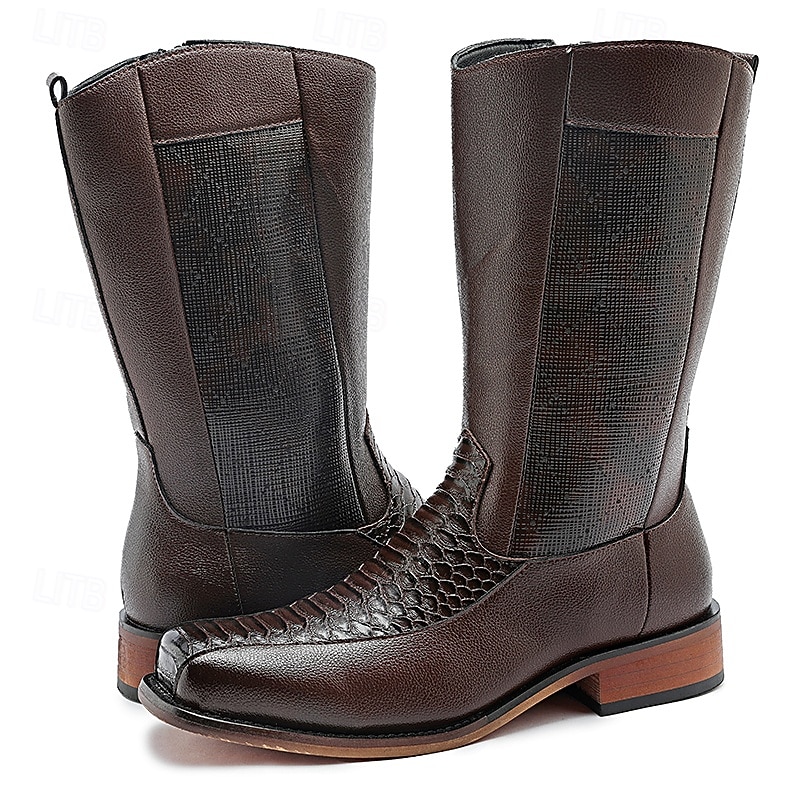 More information about Men's Dark Brown Crocodile Textured Boots – Sophisticated and Fashionable, Perfect for Formal Business and Special Occasions