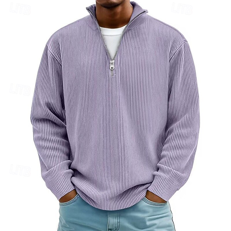 HOT ! Men's Polo Shirts Quarter Zip Polo Daily Wear Date Quarter Zip Long Sleeve Fashion Basic Plain Zipper Spring Fall Regular Fit Black White Wine Navy Blue Sky Blue Purple Polo Shirts
