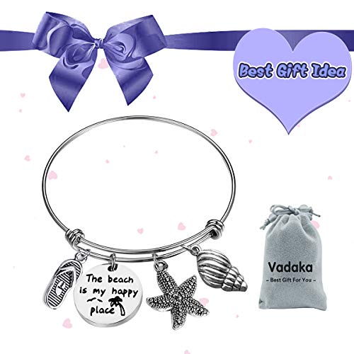 HOT ! Vadaka Beach Lover Bracelet Gift Beach Jewelry Bracelet Stainless Steel Bangle Birthday Christmas Graduation Gift for Women Ocean Lover