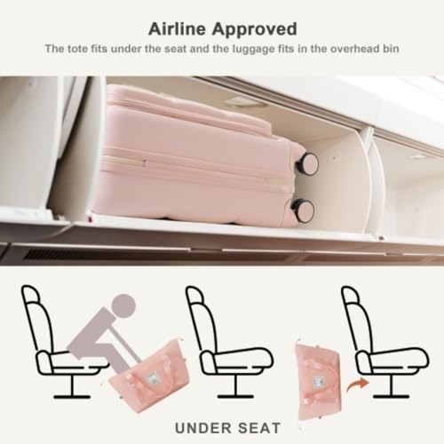 HOT ! 3-Piece Luggage Set, 20-inch Front-Loading Carry-on Suitcase, 28-inch Expandable Suitcase and Expandable Travel Bag, USB Port, ABS Material, Built-in Luggage Hook, Cup Holder, Pink