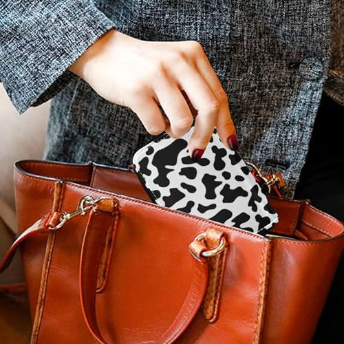 White Black Cow Print Wallet for Women Small Card Holder Wallets RFID Blocking Print Zipper Wallet with Coin Pocket 5