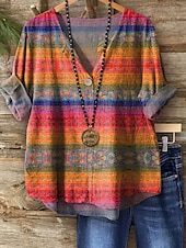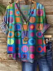 More information about Women's Blouse Long Sleeve V Neck Floral Graphic Vintage Tropical Hawaiian Regular Tops Daily Holiday Beach Wear Print Blue Orange Green Summer Spring