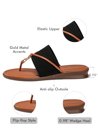 • Unique Design: Cute thong sandals for women feature a flip flop silhouette, a thick elastic strap, a slight wedge heel, as well as metal accents, is an integration of classic and fashion to add the perfect spark to your outfit
