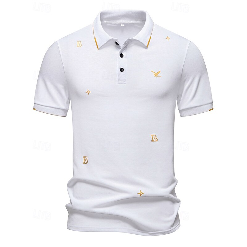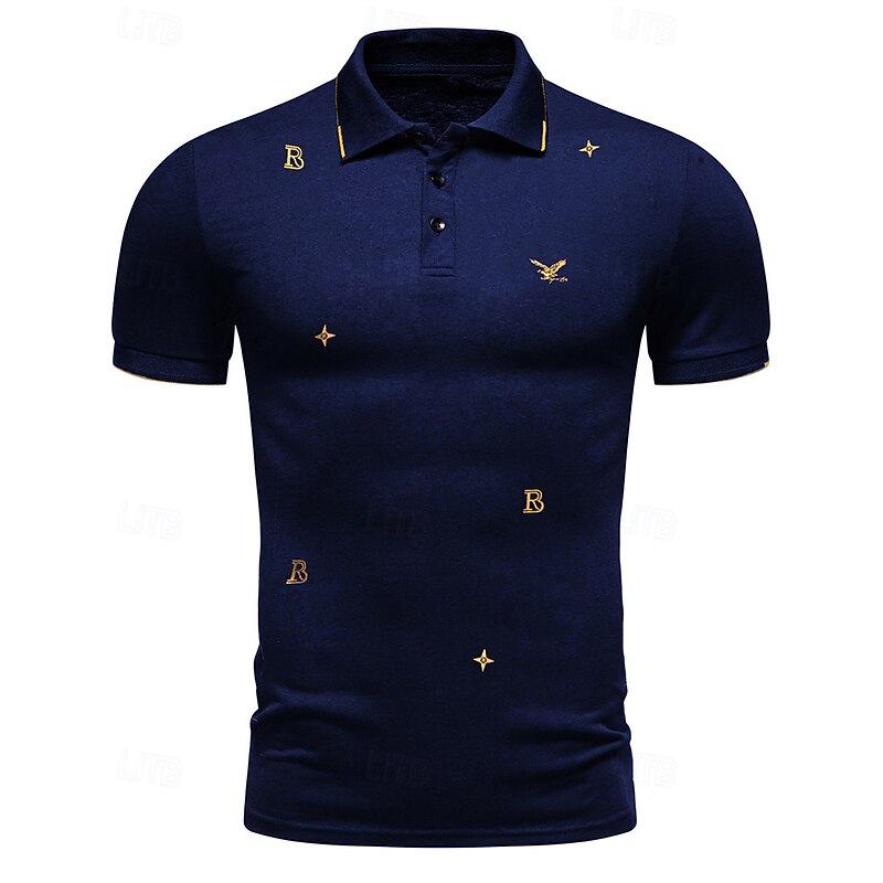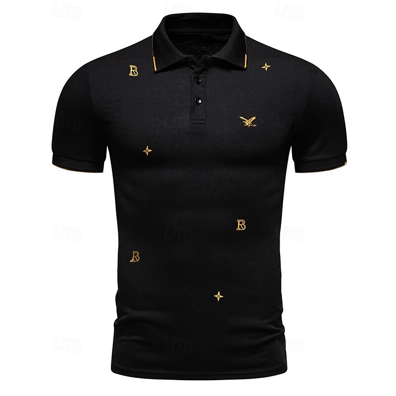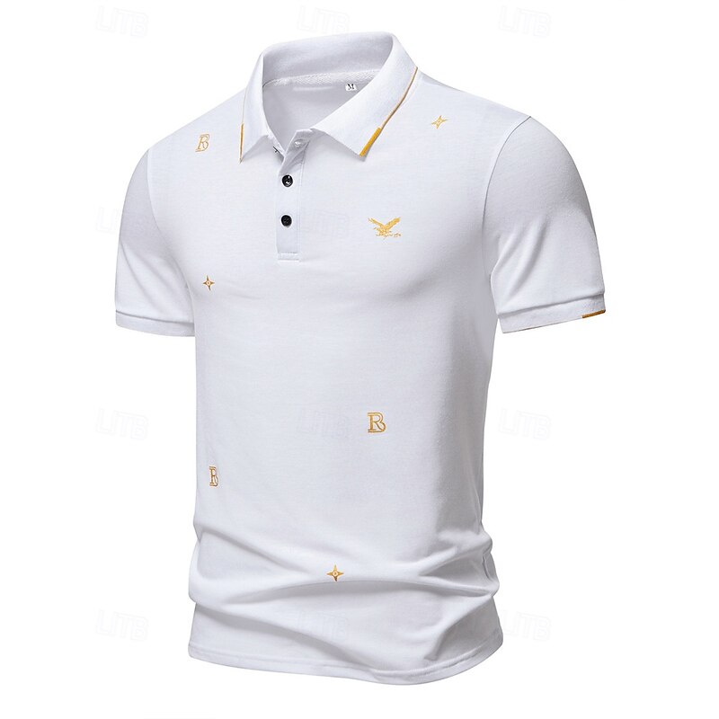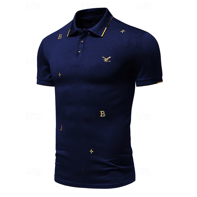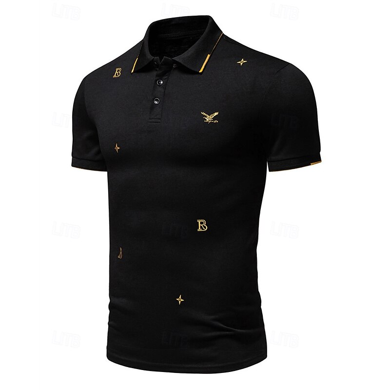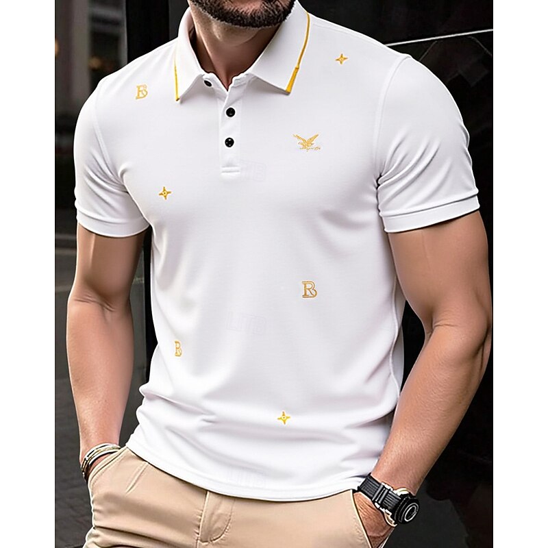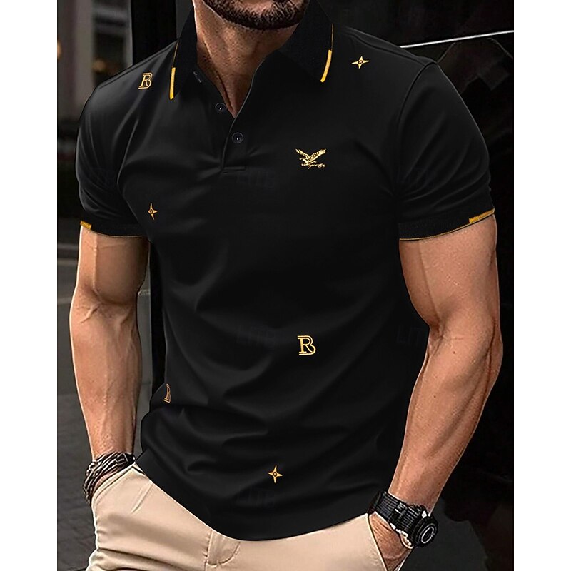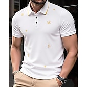 Men's Polo Button Up Polos Casual Sports Lapel Short Sleeve Fashion Basic Print Buttons Summer Spring Black White Wine Navy Blue Polo 19