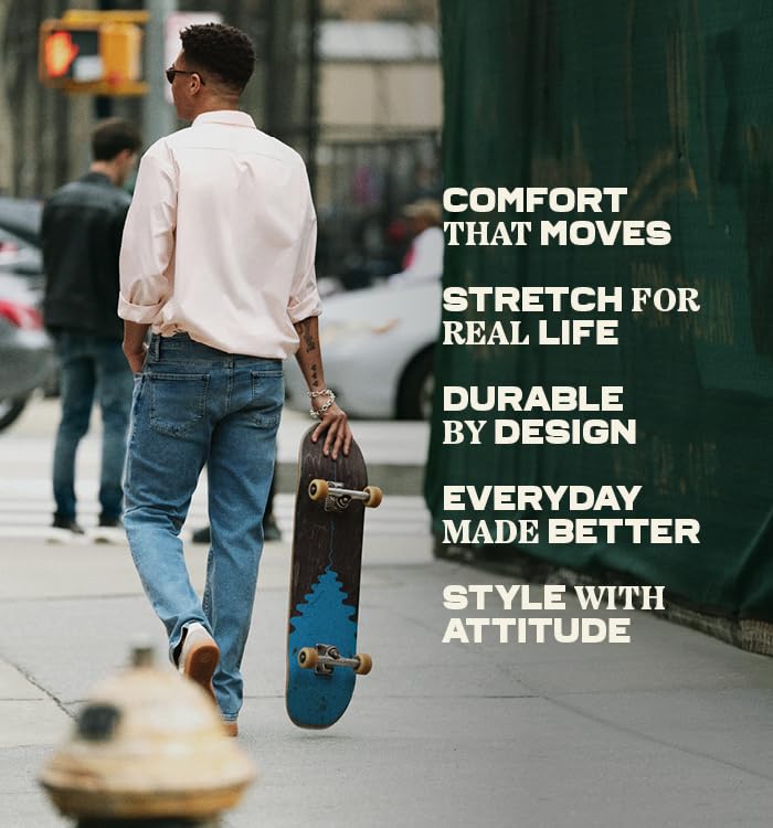 • VERSATILE STYLE FOR MEN ON THE MOVE: Whether you're heading to work or out for the weekend, these jeans are designed to match any outfit. Signature contrast bar tack stitching adds a subtle detail that sets you apart.