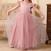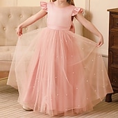More information about Kids Girls' Flower Girl Dress Party Dress Solid Color Sleeveless Wedding Party Special Occasion Backless Zipper Tie Knot Adorable Sweet Polyester Maxi Party Dress Summer Spring Fall 4-13 Years White