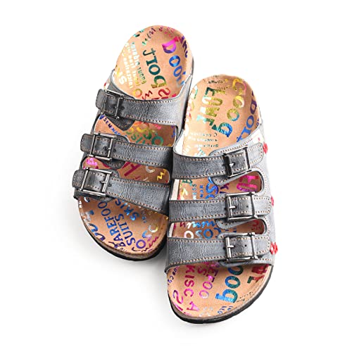TMA EYES Womens Flat Slide Sandals with Arch Support Strap Adjustable Buckle Non Slip Rubber Sole 5