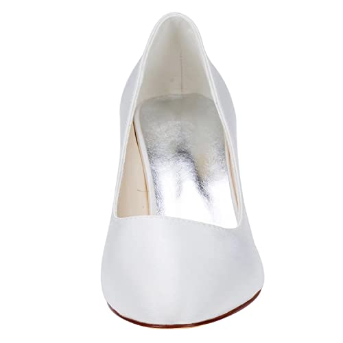 Emily Bridal Women's Lace Satin Chunky Heel Closed Toe Pumps with Others 7