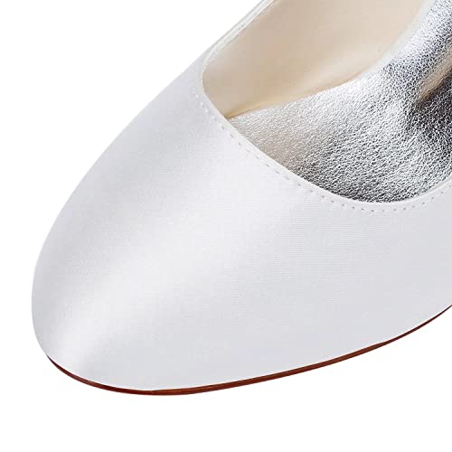 Emily Bridal Women's Lace Satin Chunky Heel Closed Toe Pumps with Others 6