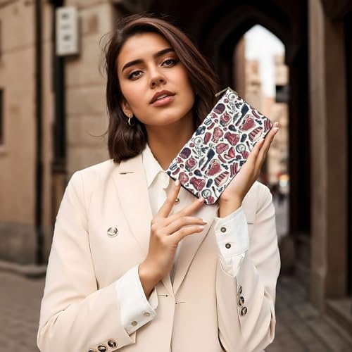 HOT ! Leather Thin Slim Wallets for Women & Men - Red Meat Print Card Wallet Holder with Zipper