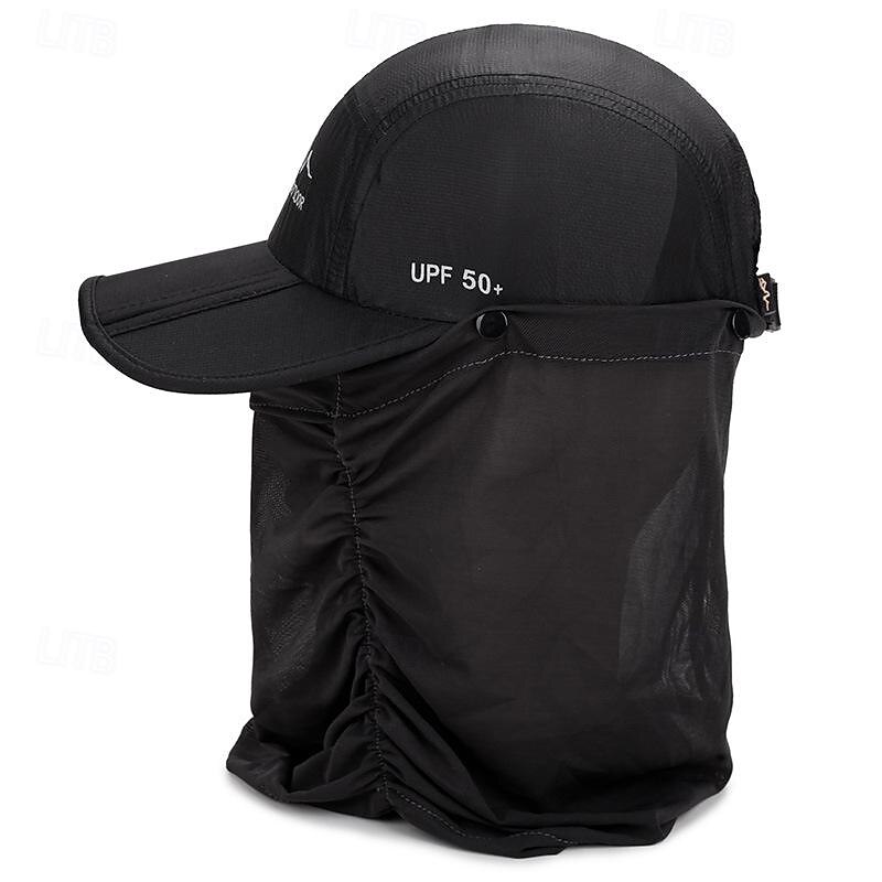 The cap comes with a wide brim that provides excellent sun protection, shielding the face effectively from harmful UV rays. A detachable neck flap adds another layer of UV protection, boasting a UPF 50+ rating. The cap's adjustable strap ensures a comfortable fit for various head sizes, while its windproof and breathable design provides additional practicality. The cap also features a distinctive letter pattern on the front for a modern and trendy look.