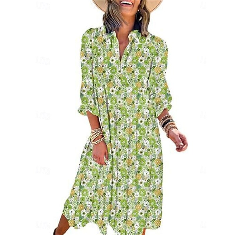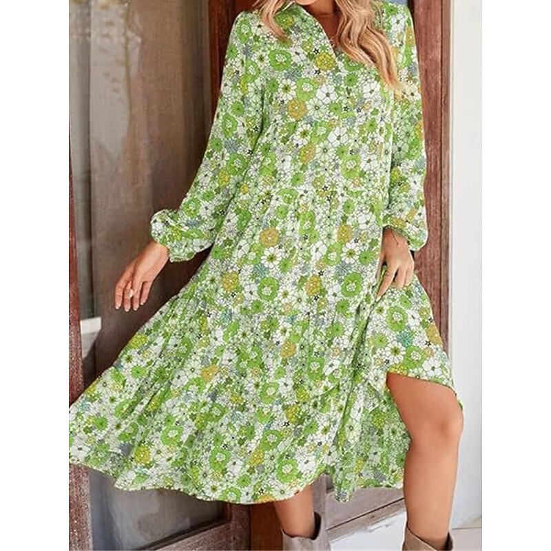 More information about Women's Floral Split Neck Midi Dress Long Sleeve Summer Spring