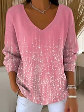 More information about Women's T Shirt Ombre Graphic Elegant Fashion Casual Long Sleeve V Neck Regular Tops Daily Weekend Print Pink Spring Fall Winter