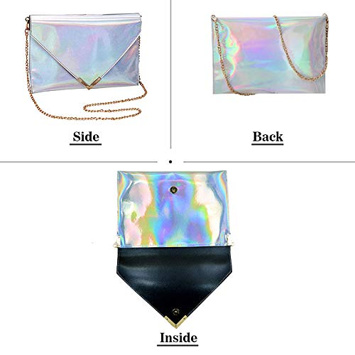 Why Choose Women Colorful Holographic Evening Clutch Envelope Handbag Small Chain Cross-body Bag Shoulder Bag 167 Silver?