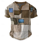 More information about Men's Faux Patchwork Pattern Henley Shirt Waffle T Shirt Short Sleeve Daily Retro Vintage Classic Sports Outdoor Casual Holiday Spring & Summer All Seasons Dark Brown Blue Green Grey Henley Henley